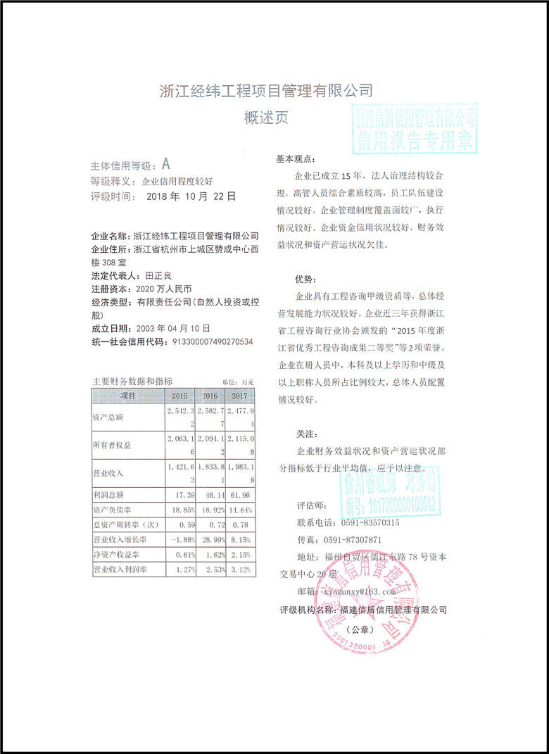 浙江經(jīng)緯工程項(xiàng)目管理有限公司2018