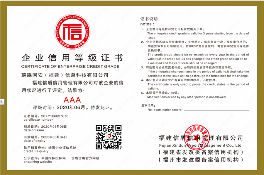 瑞森網(wǎng)安(福建)信息科技有限公司