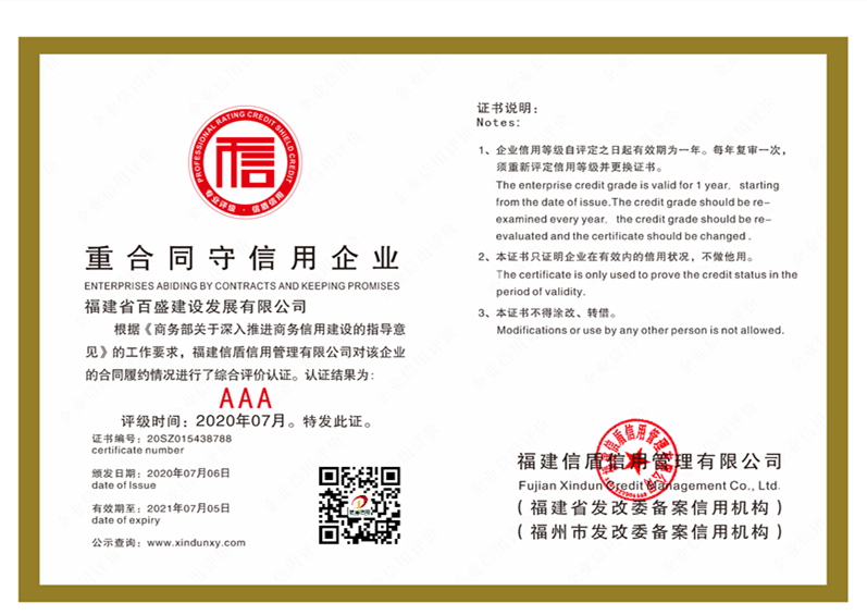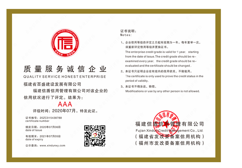 福建省百盛建設發展有限公司2020
