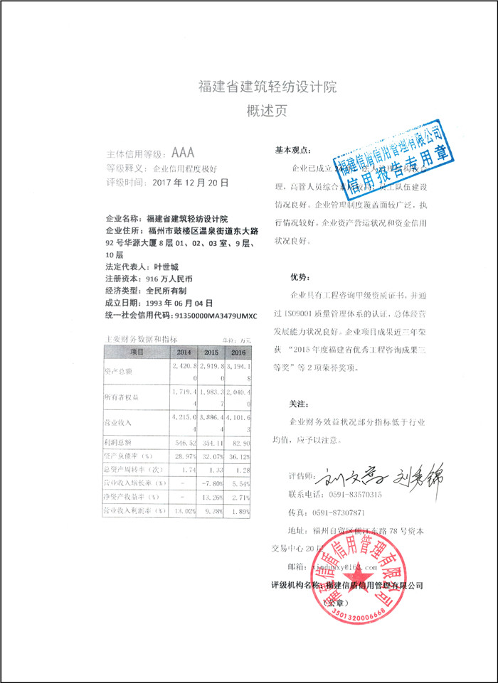 福建省建筑輕紡設(shè)計院 XDPJ201712232