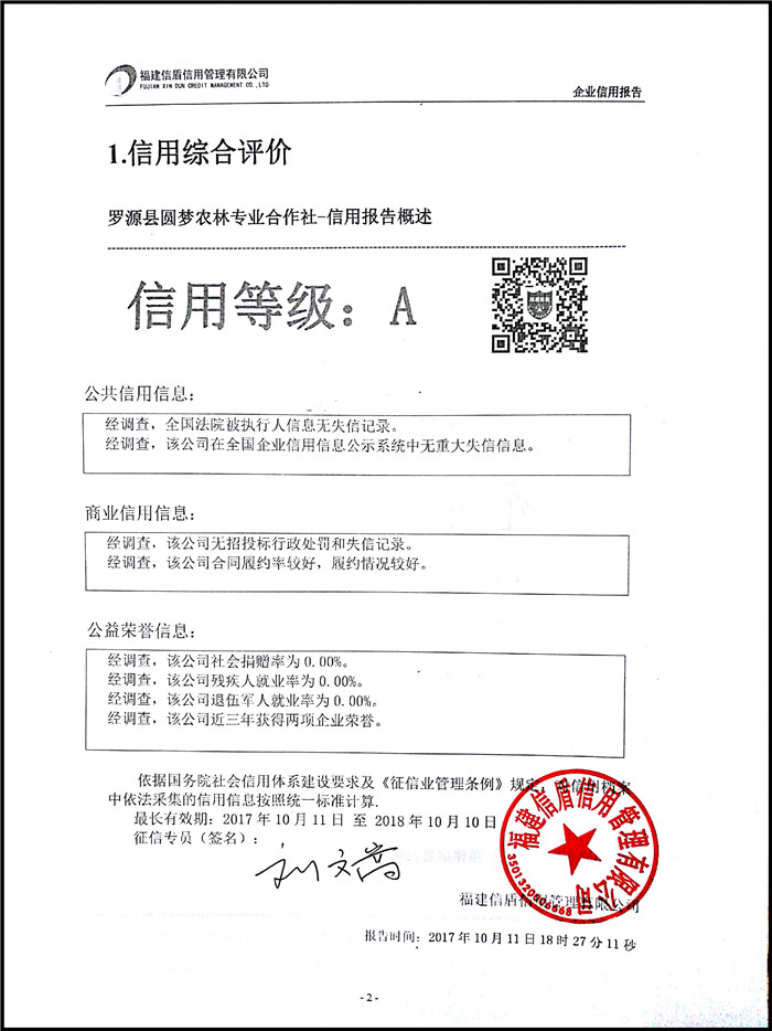 羅源縣圓夢農(nóng)林專業(yè)合作社 XDBG201710001