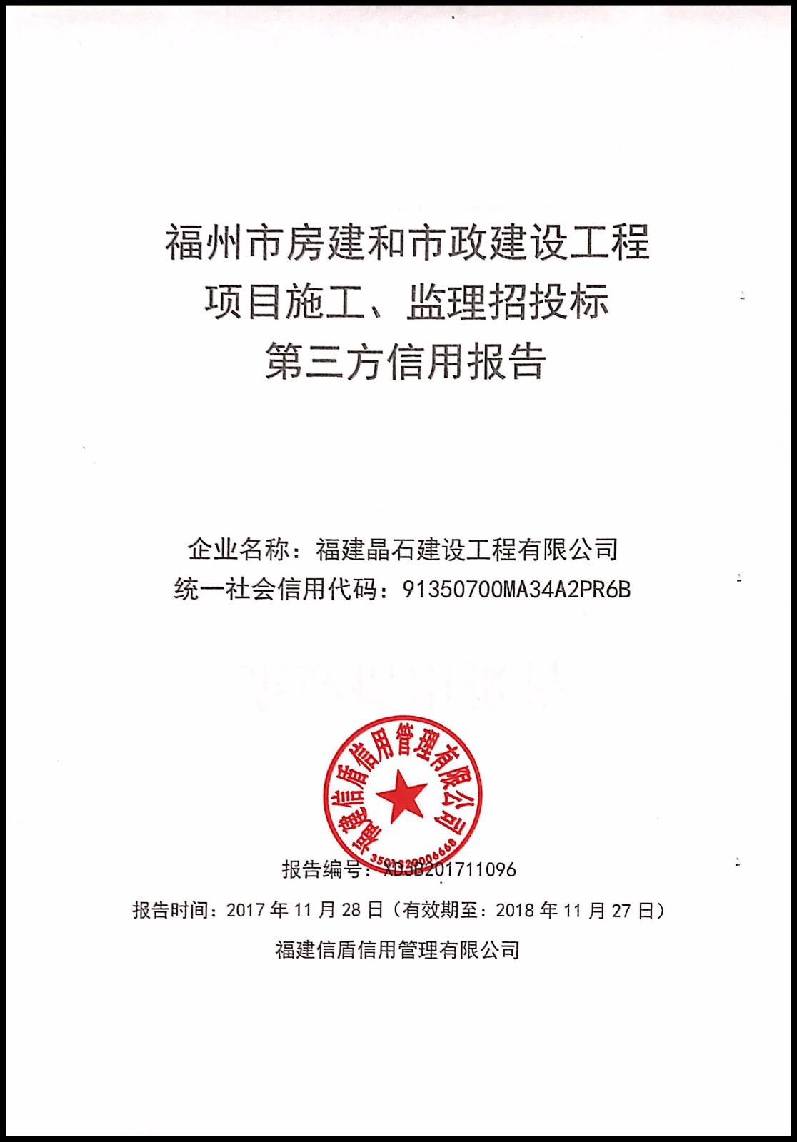 福建晶石建設工程有限公司 XDJB201711096