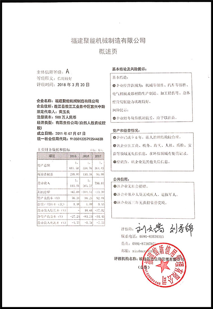 福建聚能機(jī)械制造有限公司 XDPJ201803182