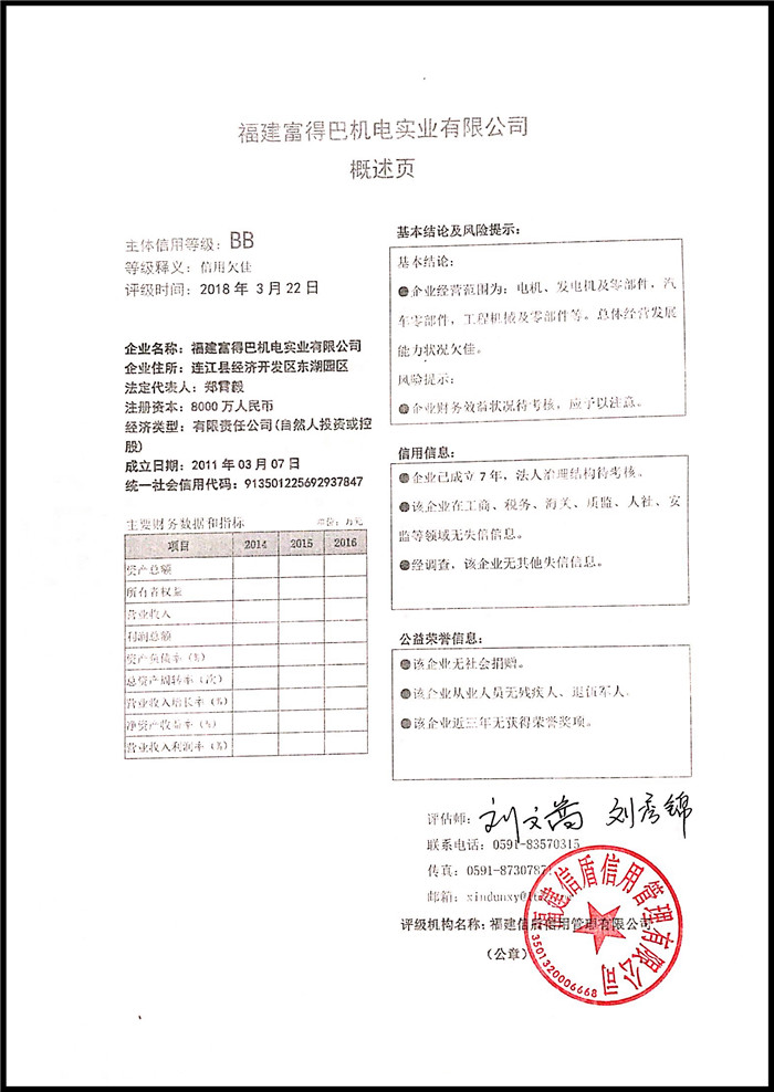 福建富得巴機電實業有限公司 XDPJ201803204