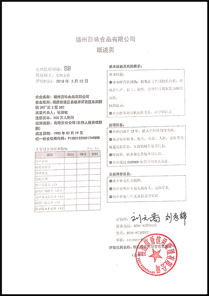 福州百味食品有限公司 XDPJ201803211