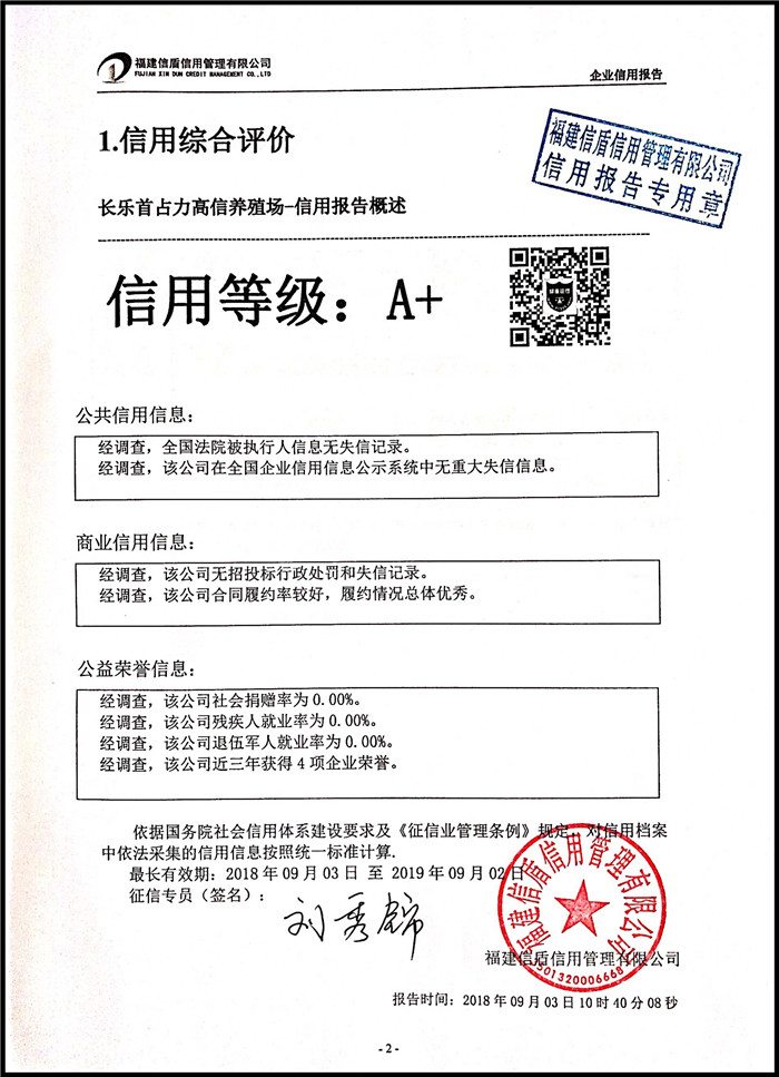 長(zhǎng)樂(lè)首占力高信養(yǎng)殖場(chǎng) XDBD201809001