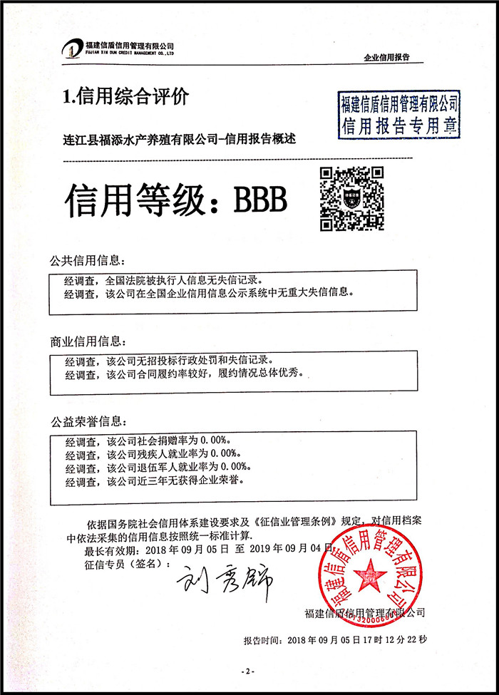 連江縣福添水產(chǎn)養(yǎng)殖有限公司 XDBD201809007