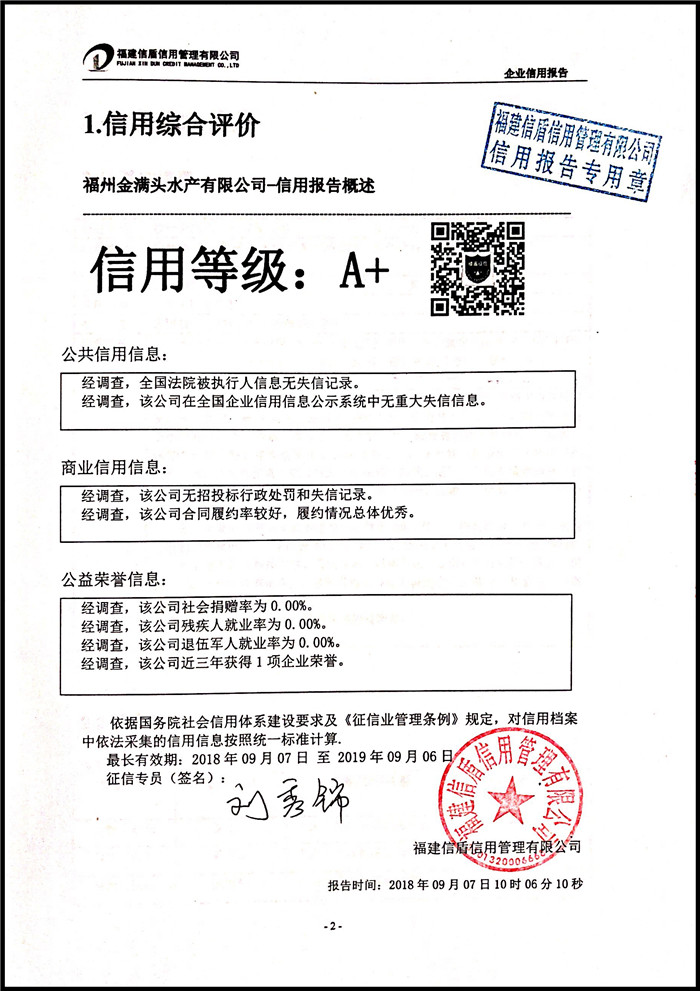 福州金滿頭水產有限公司 XDBD201809010