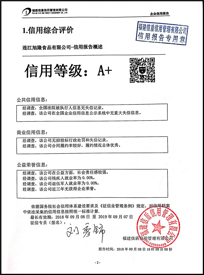 連江旭隆食品有限公司 XDBD201809013