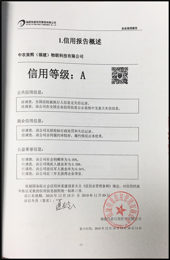 中農(nóng)宸熙(福建)物聯(lián)科技有限公司 XDBG201812162
