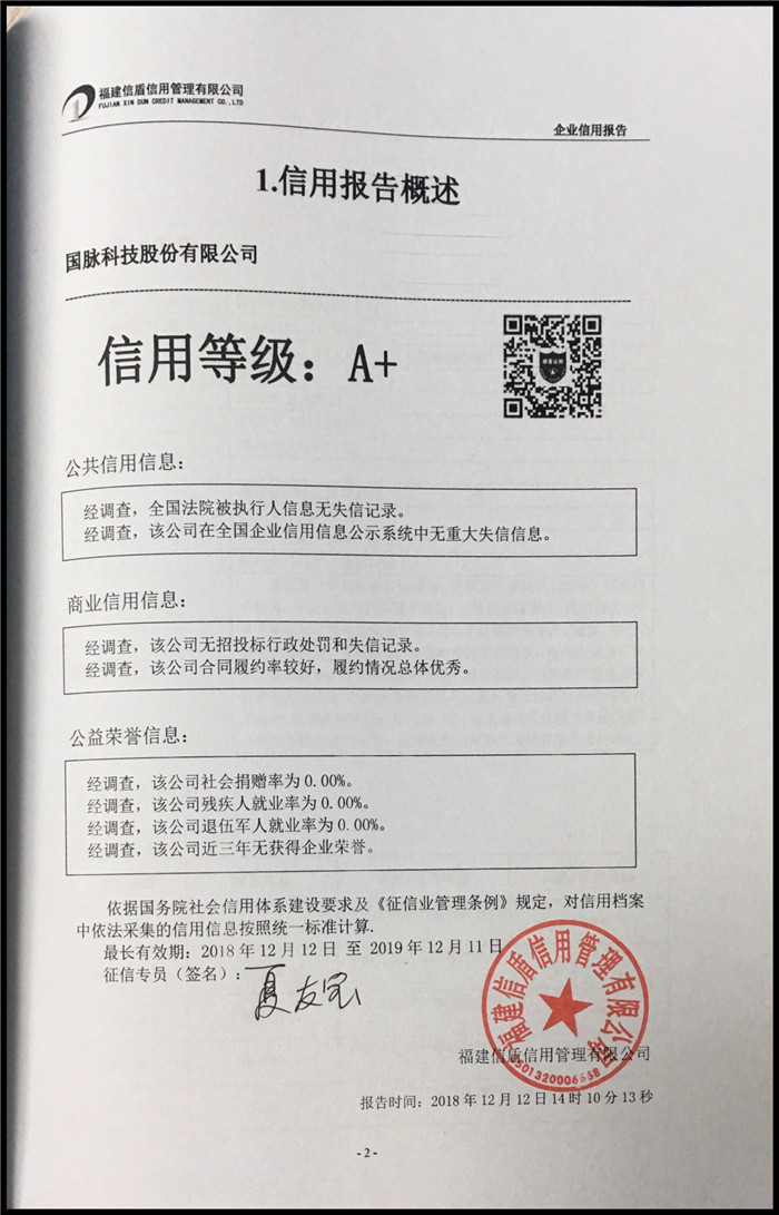 國(guó)脈科技股份有限公司 XDBG201812106