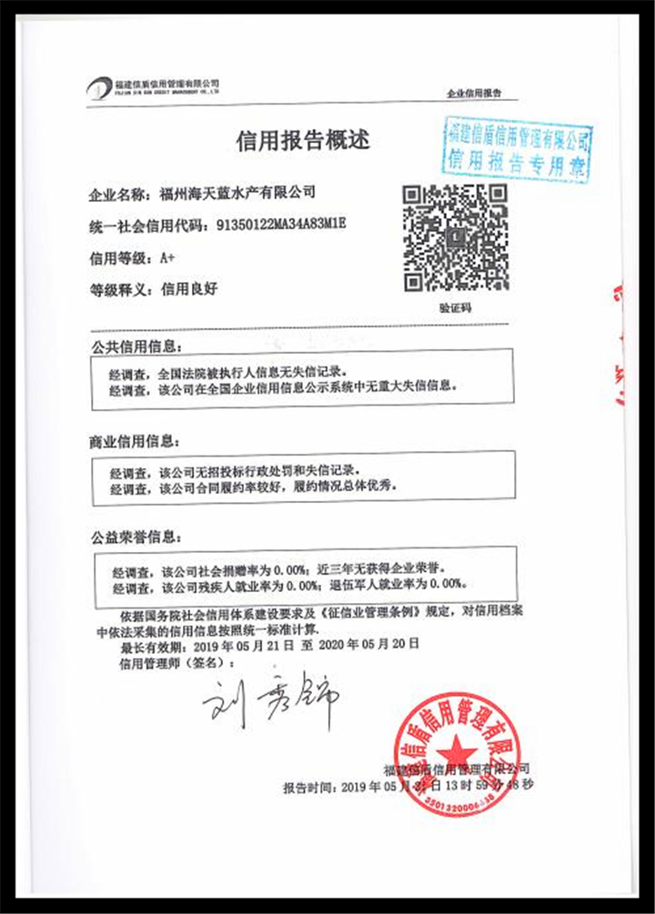 福州海天藍水產有限公司2019