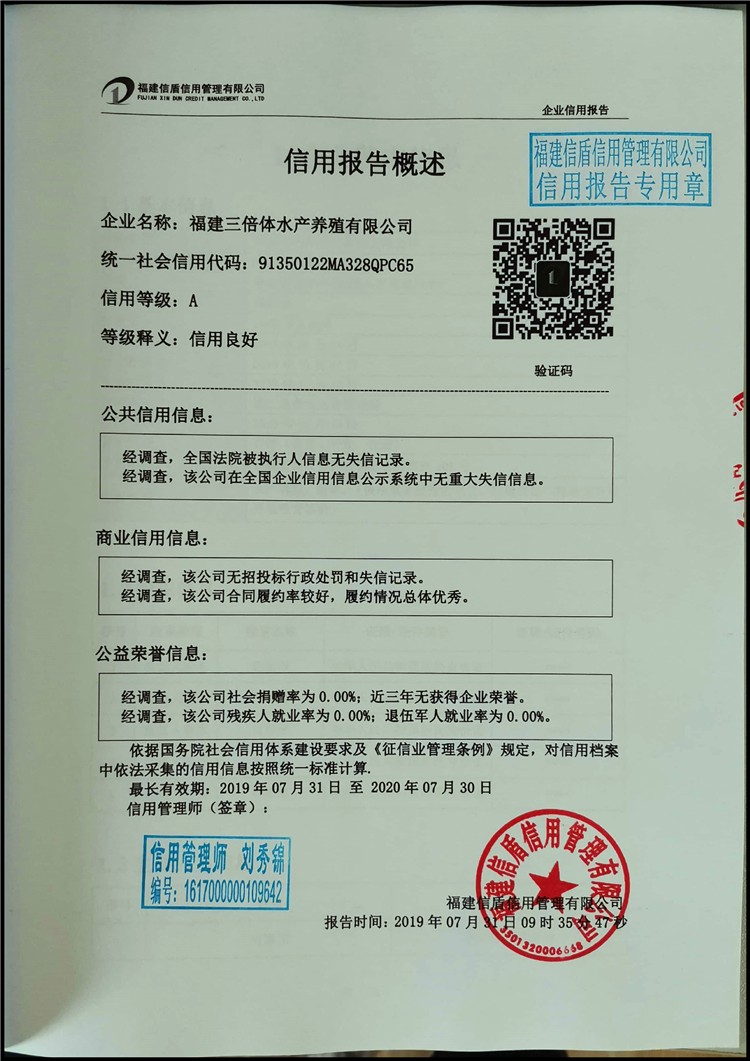 福建三倍體水產(chǎn)養(yǎng)殖有限公司2019